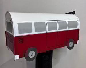 Colonial Red Volkswagen Bus Mailbox by TheBusBox - Grey Windows